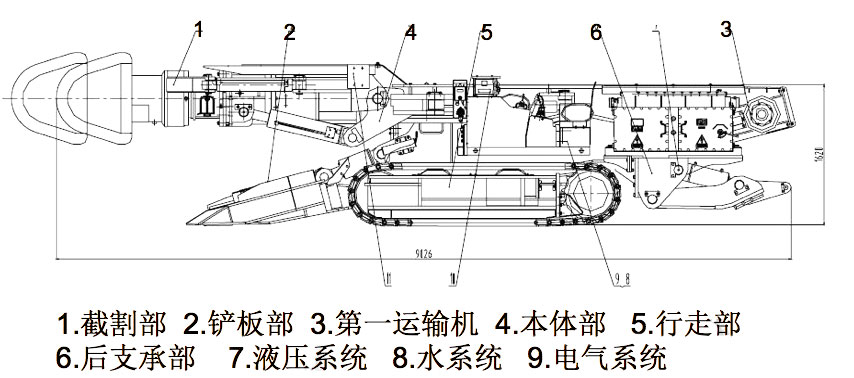 懸臂式掘進(jìn)機(jī)是一種能夠?qū)崿F(xiàn)截割、裝載運(yùn)輸、自行走及噴霧除塵的聯(lián)合機(jī)組。隨著回采工作面綜合采煤機(jī)械化的快速發(fā)展,煤礦對巷道掘進(jìn)速度要求越來越高。為了提高采準(zhǔn)巷道的速度,懸臂式掘進(jìn)機(jī)被大力研制并逐步發(fā)展完善。懸臂式掘進(jìn)機(jī)要同時(shí)實(shí)現(xiàn)剝離煤巖、裝載運(yùn)出、機(jī)器本身的行走調(diào)動(dòng)以及噴霧除塵等功能,即集切割、裝載、運(yùn)輸、行走于一身。它主要由切割機(jī)構(gòu)、裝載機(jī)構(gòu)、運(yùn)輸機(jī)構(gòu)、行走機(jī)構(gòu)、機(jī)架及回轉(zhuǎn)臺(tái)、液壓系統(tǒng)、電氣系統(tǒng)、冷卻滅塵供水系統(tǒng)以及操作控制系統(tǒng)等組成。